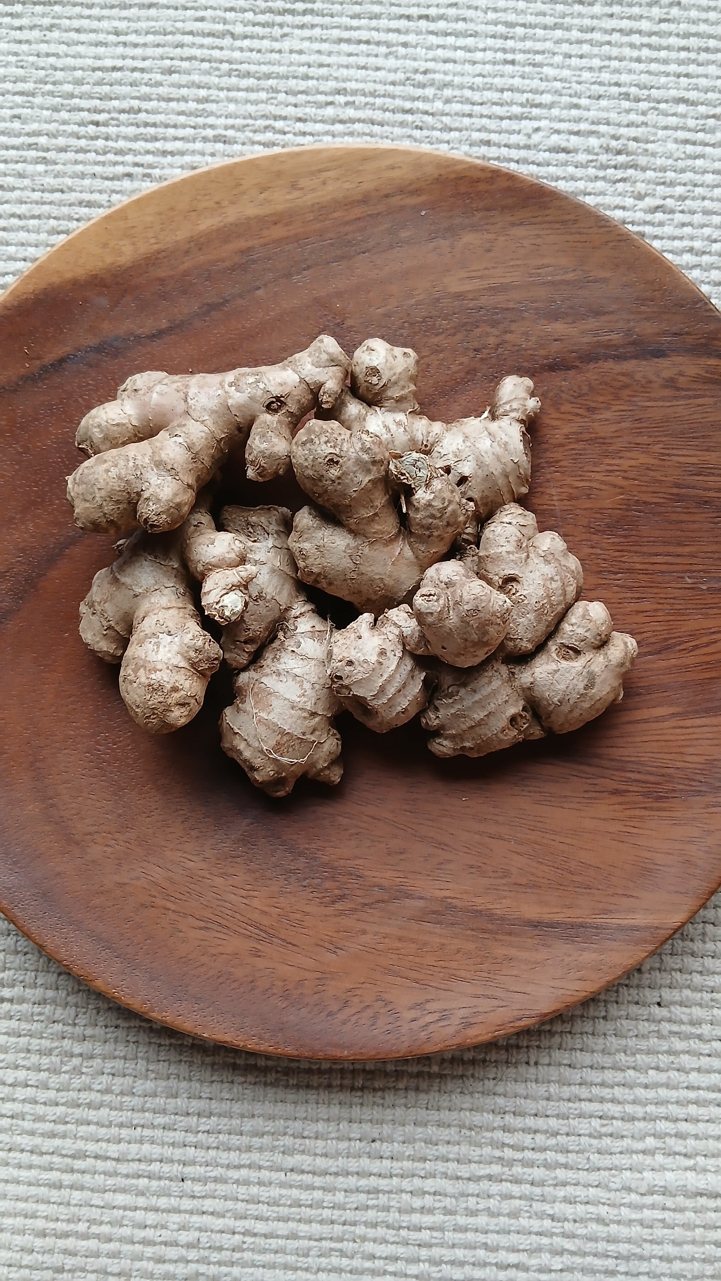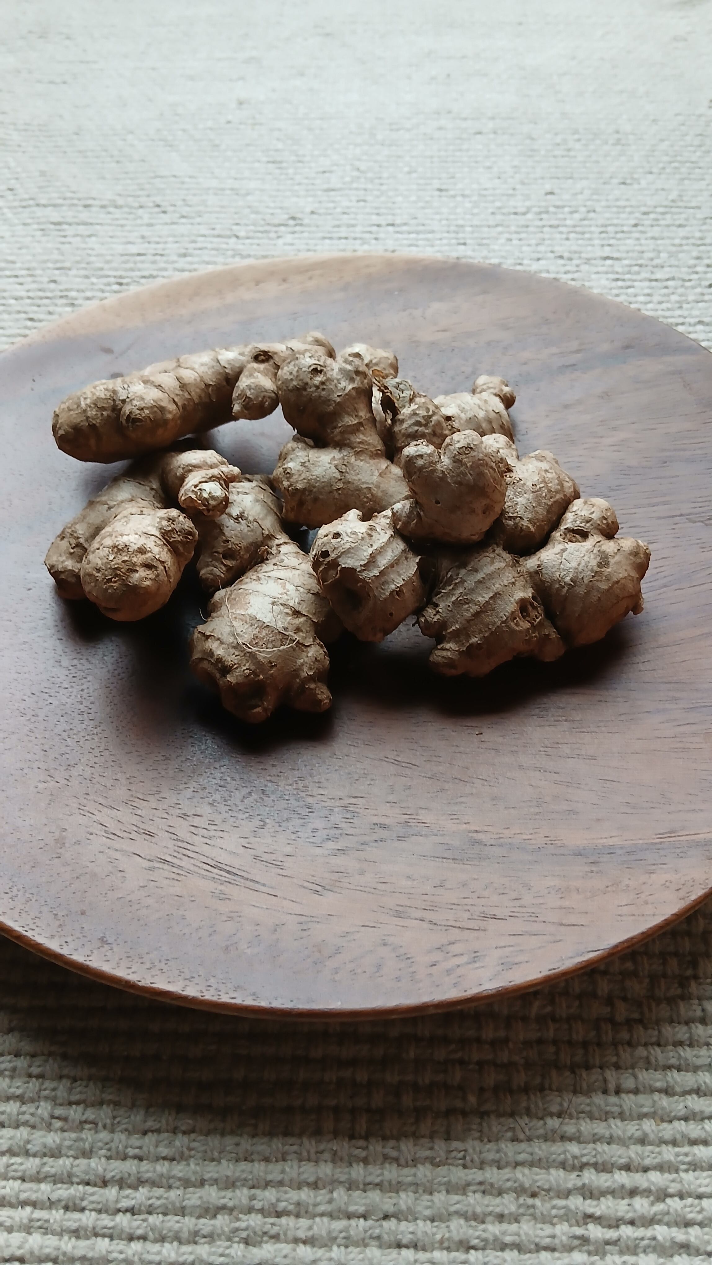 昨年収穫した生姜の種として使われた親生姜です。品種は在来種とされる房州中太生姜。やや小ぶりながら辛味、香りともに強いと言われています。薬味や煮付けなど色々使えます。親は皮が厚めなので食味気になる方は削るなどしてご利用ください。農薬化学肥料不使用なのできれいに水洗いして皮ごと使うこともできます。
